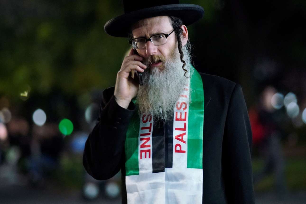 Καρέ από την πόλη όπου τα πάντα είναι δυνατόν να συμβούν: ορθόδοξος εβραίος της Νέας Υόρκης διαδηλώνει υπέρ των Παλαιστινίων – ασφαλώς η Μοσάντ θα διερευνήσει αν οι χαρακτηριστικές «μπούκλες» στους κροτάφους είναι αυθεντικές ή εξτένσιον