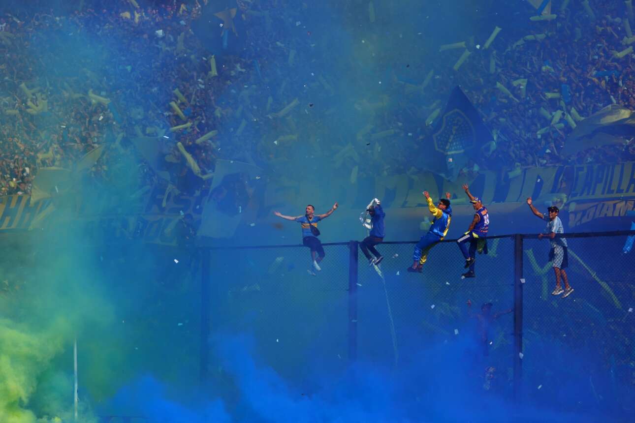 Πέντε φίλαθλοι της Μπόκα, της ομάδας του Μαραντόνα, ευτύχησαν να αναρριχηθούν στον φράχτη του γηπέδου «Μπομπονέρα», να τυλιχτούν με το κυανοκίτρινο καπνοσύννεφο, να χαρούν με την ψυχή τους