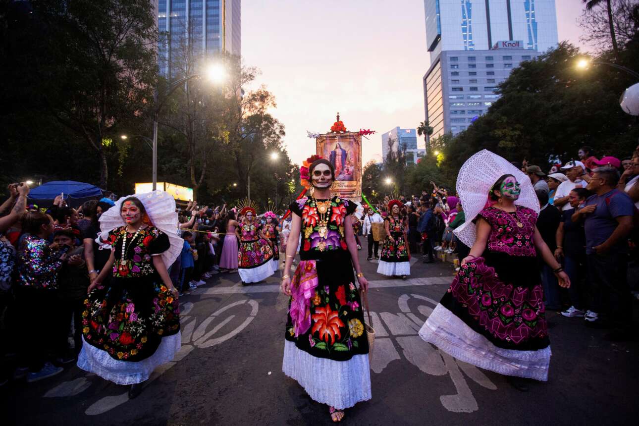 Τρελό πανηγύρι είναι οι μεξικάνικες φιέστες για την Ημέρα των Νεκρών: γυναίκες κυκλοφορούν καταλλήλως μακιγιαρισμένες ώστε να μοιάζουν σαν περιφερόμενα ζόμπι