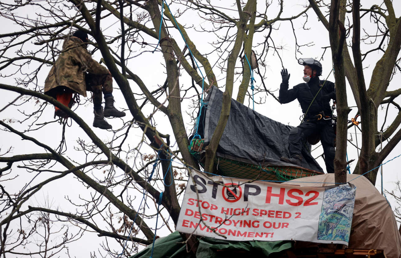 Οικολόγος στο κλαρί και κωφεύει στις προτροπές του φύλακα να πατήσει το γρασίδι του λονδρέζικου πάρκου – διαμαρτύρεται για την κυκλοφορία του τρένου υψηλής ταχύτητας HS2