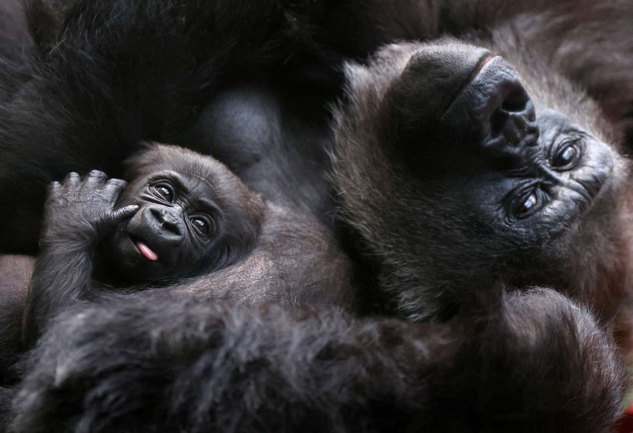Βρεφική και μητρική ευτυχία για δύο γορίλες στον ζωολογικό κήπο του Λονδίνου. Ο μέγας μικρόκοσμος των φυσικών πραγμάτων λάμπει ακόμη και μέσα στα κελιά, πίσω από τα κάγκελα
