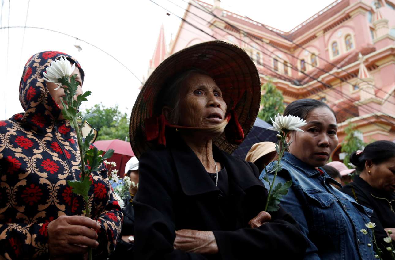 Νγκιέ Αν, Βιετνάμ: συγγενείς και συγχωριανοί δύο μεταναστών από εκείνους που πέθαναν μέσα στην καρότσα της νταλίκας, στο Εσεξ, παρίστανται στην κηδεία τους