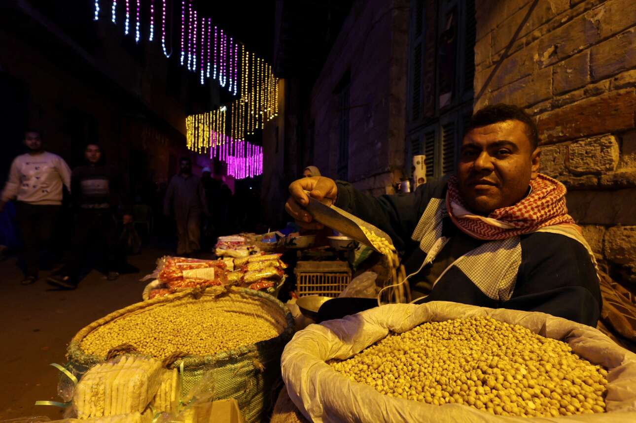 Γλειφειτζούρια, ζαχαρωτά και στραγάλι με τη σέσουλα προσφέρει στον φακό ο πλανόδιος μικροπωλητής στο Παλιό Κάιρο, εκεί όπου κάποια αγαθά θα αντιστέκονται πάντα στην τυποποίηση. Η εποχή είναι γιορτινή και για τους αιγυπτίους μουσουλμάνους, αφού τώρα τιμούν τη γέννηση της συγγενούς του Μωάμεθ, Αλ-Σαΐντα Ναφίσα