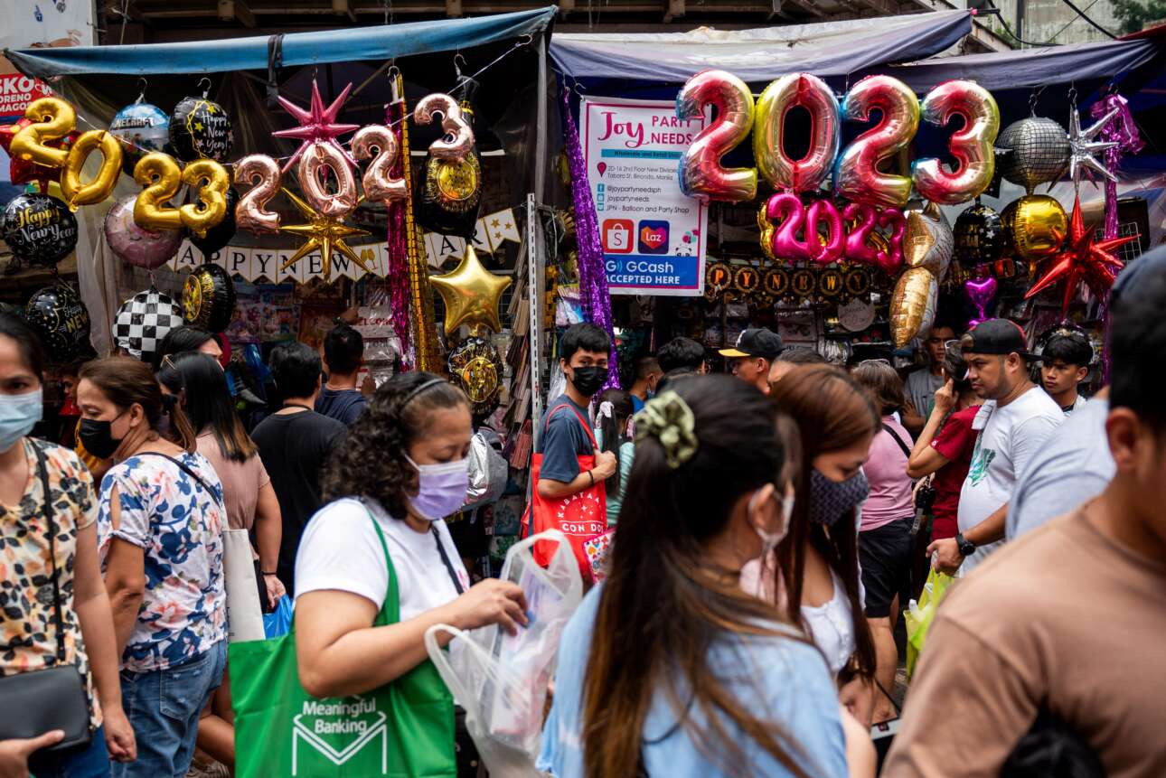 Και στην εξωτική Μανίλα, στις Φιλιππίνες, οι πανηγυρίσαντες δεόντως τον ερχομό του 2023 δρόμοι της αγοράς γέμισαν από ανθρώπους που ψώνισαν αγαθά για το γιορταστικό τραπέζι της παραμονής της Πρωτοχρονιάς