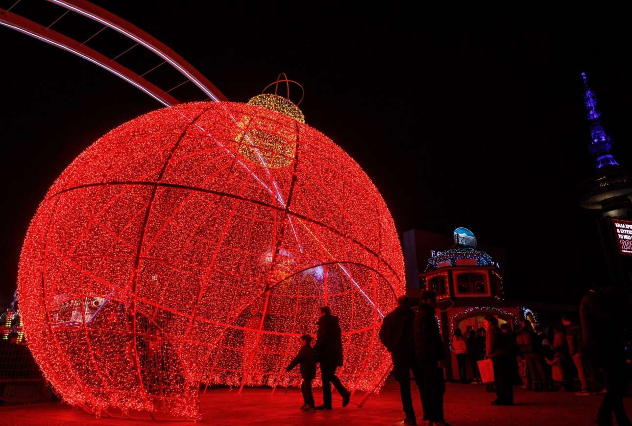 Πολλούς Θεσσαλονικείς προσέλκυσε η τεράστια χριστουγεννιάτικη μπάλα που στήθηκε στον χώρο της ΔΕΘ, ορισμένοι μάλιστα εισήλθαν οικειοθελώς στα ενδότερα μαζί με τα πιτσιρίκια τους