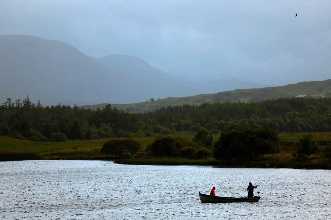 Ανακουφιστικό καρέ για όσους υποφέρουν από φωτοαλλεργία και ταλαιπωρούνται από αλλεπάλληλες δερματίτιδες καθ’ όλη τη διάρκεια του ελληνικού θέρους: ψάρεμα υπό βροχήν σε ιρλανδέζικη λίμνη – υπό συνθήκες (απόγνωσης) η φωτογραφική συννεφιά και η διαισθητική ψύχρα είναι καταπλάσματα εφάμιλλα της κορτιζόνης