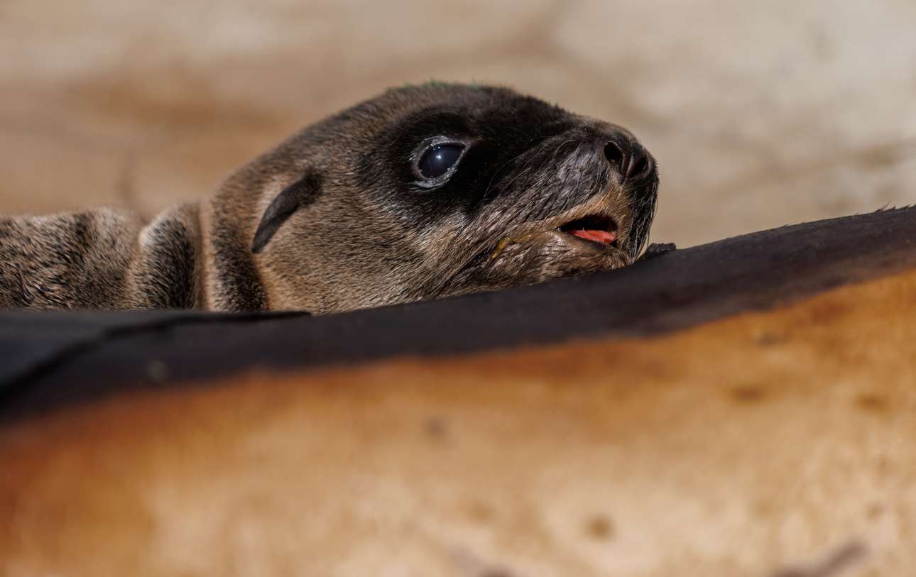 Θαλάσσιος λέων ηλικίας 24 ωρών κουρνιάζει στην πλάτη της μάνας του: το θηλυκό ζώο γέννησε το μωρό της με πόνο, διότι πάσχει από νόσο που προκαλούν στα ενάλια θηλαστικά τα τοξικά φύκια – καρέ από κέντρο φροντίδας κητών, στην Καλιφόρνια
