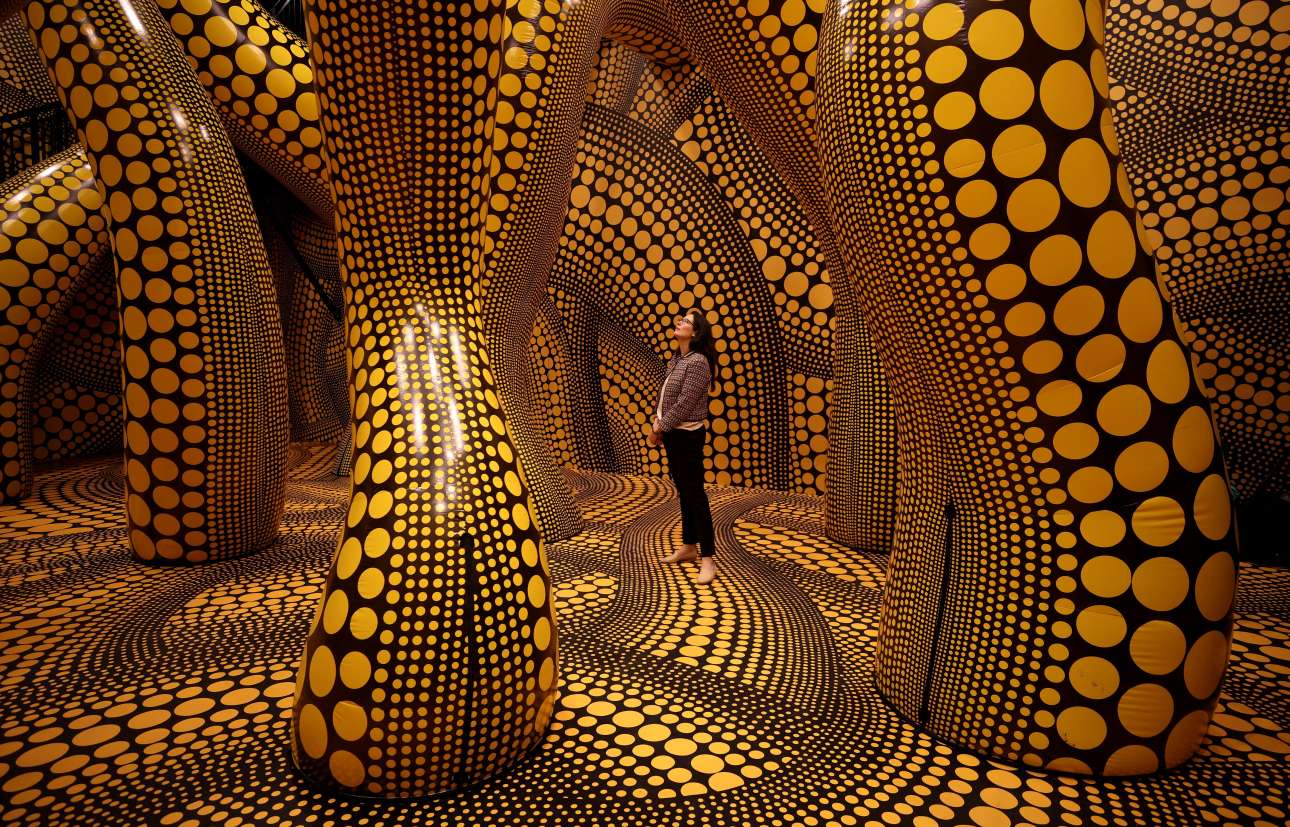 Πάλι έδρασε (χαρά στο κουράγιο της) η 94 ετών ιαπωνίδα ποπ εικαστικός Γιαγιόι Κουσάμα: σε αυτό το στιγμιότυπο θαυμάζουμε την εγκατάστασή της που φιλοξενείται στο Μάντσεστερ και τιτλοφορείται «Εσύ, εγώ και τα μπαλόνια» – όπως βλέπετε, η τέχνη της γιαγιάς κατάπιε τη νεαρή επισκέπτρια