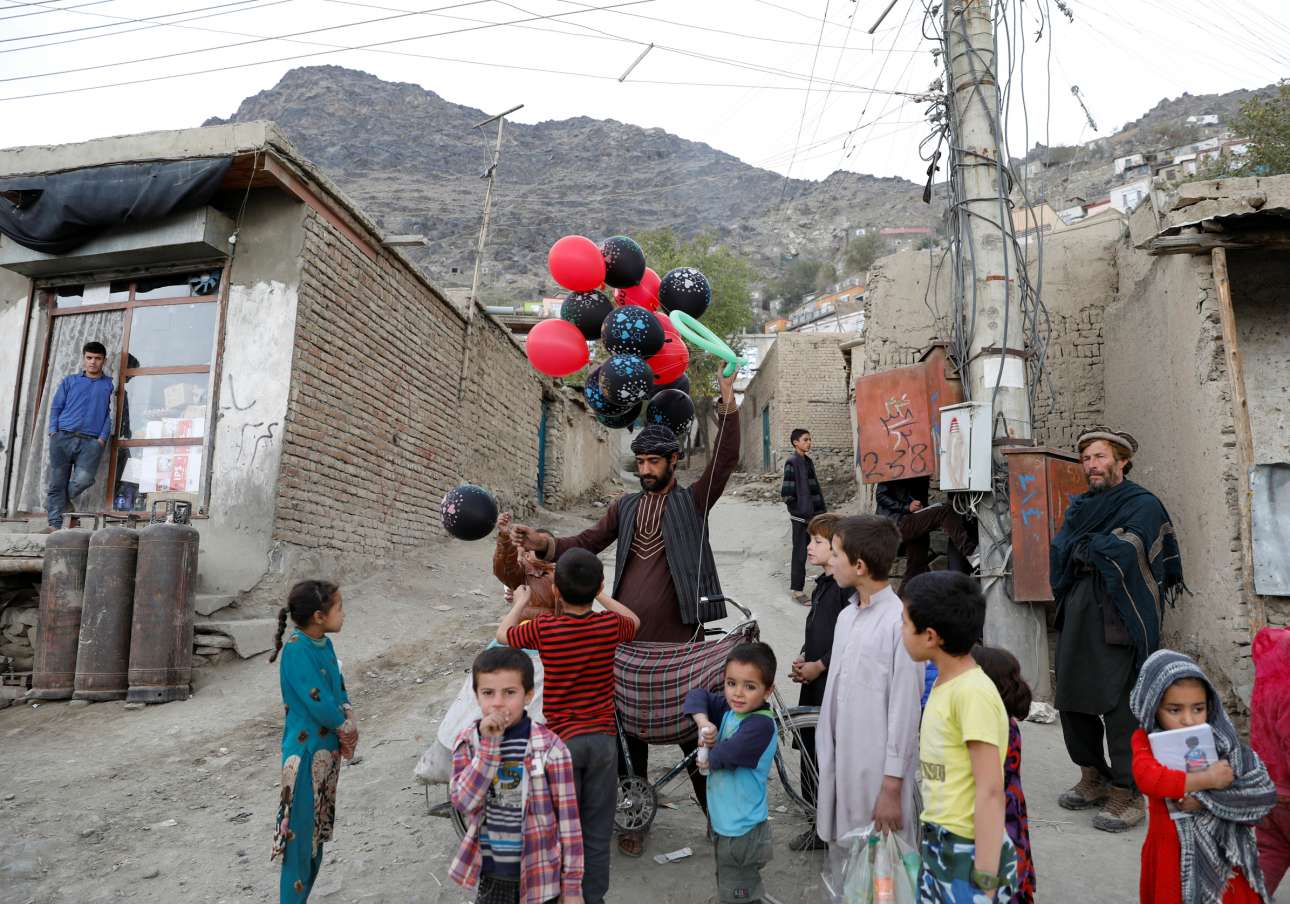 Μαύρα μπαλόνια: αφγανός μικροπωλητής σε παραγκογειτονιά της Καμπούλ μαγνητίζει πιτσιρίκια για το ψωμάκι του
