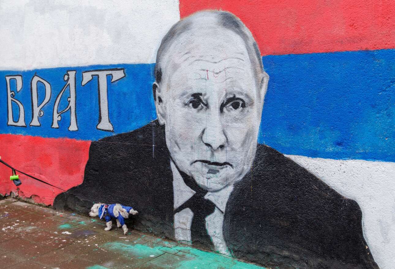 Προεκλογικό καρέ από το Βελιγράδι: καθώς η Σερβία την Κυριακή ψήφισε για πρόεδρο και Βουλή, ο δυτικόφρων ιδιοκτήτης του σκύλου έβαλε σαββατιάτικα το ζωντανό του να ουρήσει το «φρέσκο» με τις σημαίες της Σερβίας και της Ρωσίας, με το πορτρέτο του Πούτιν και με τη λέξη «αδελφός»
