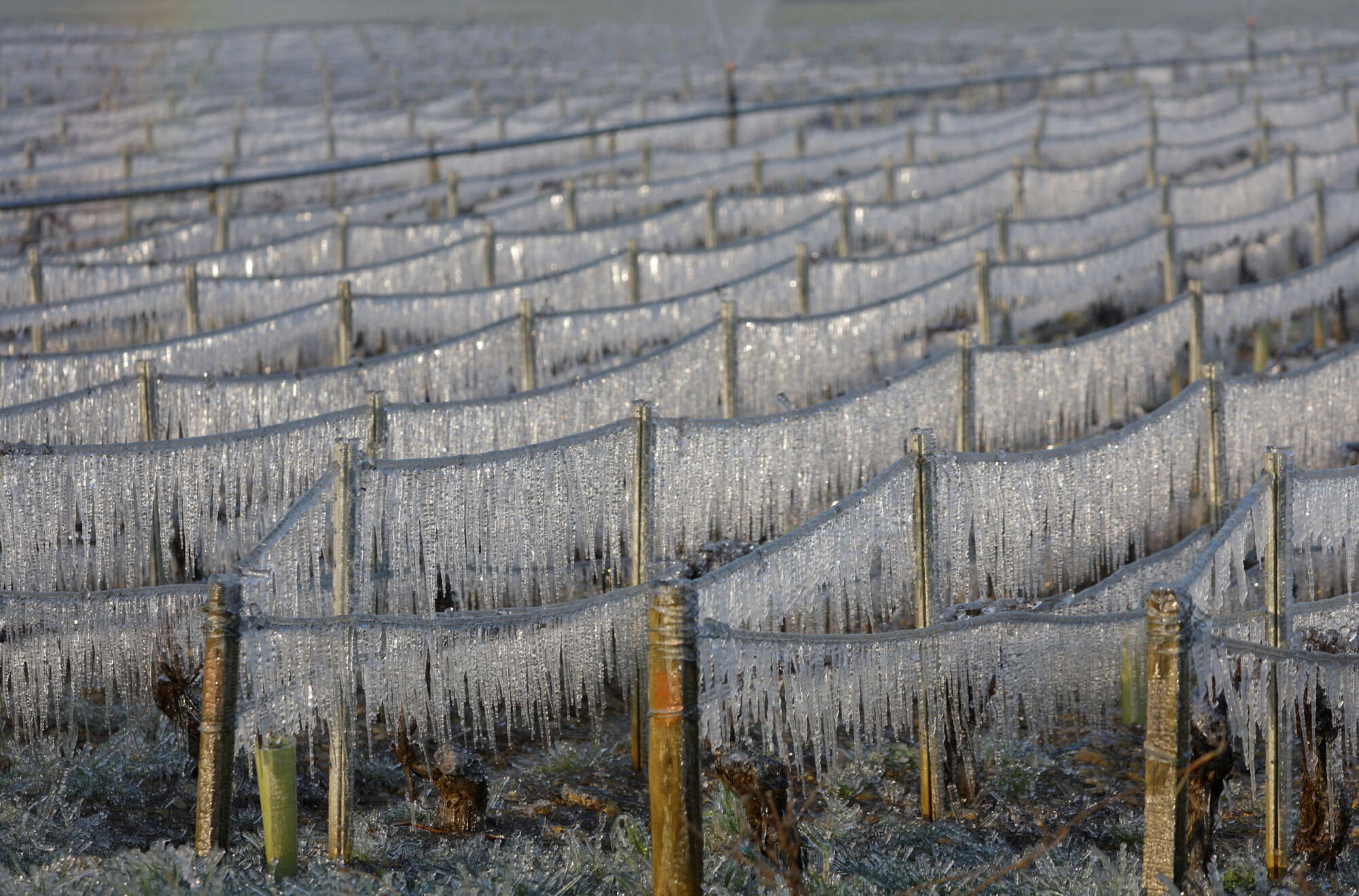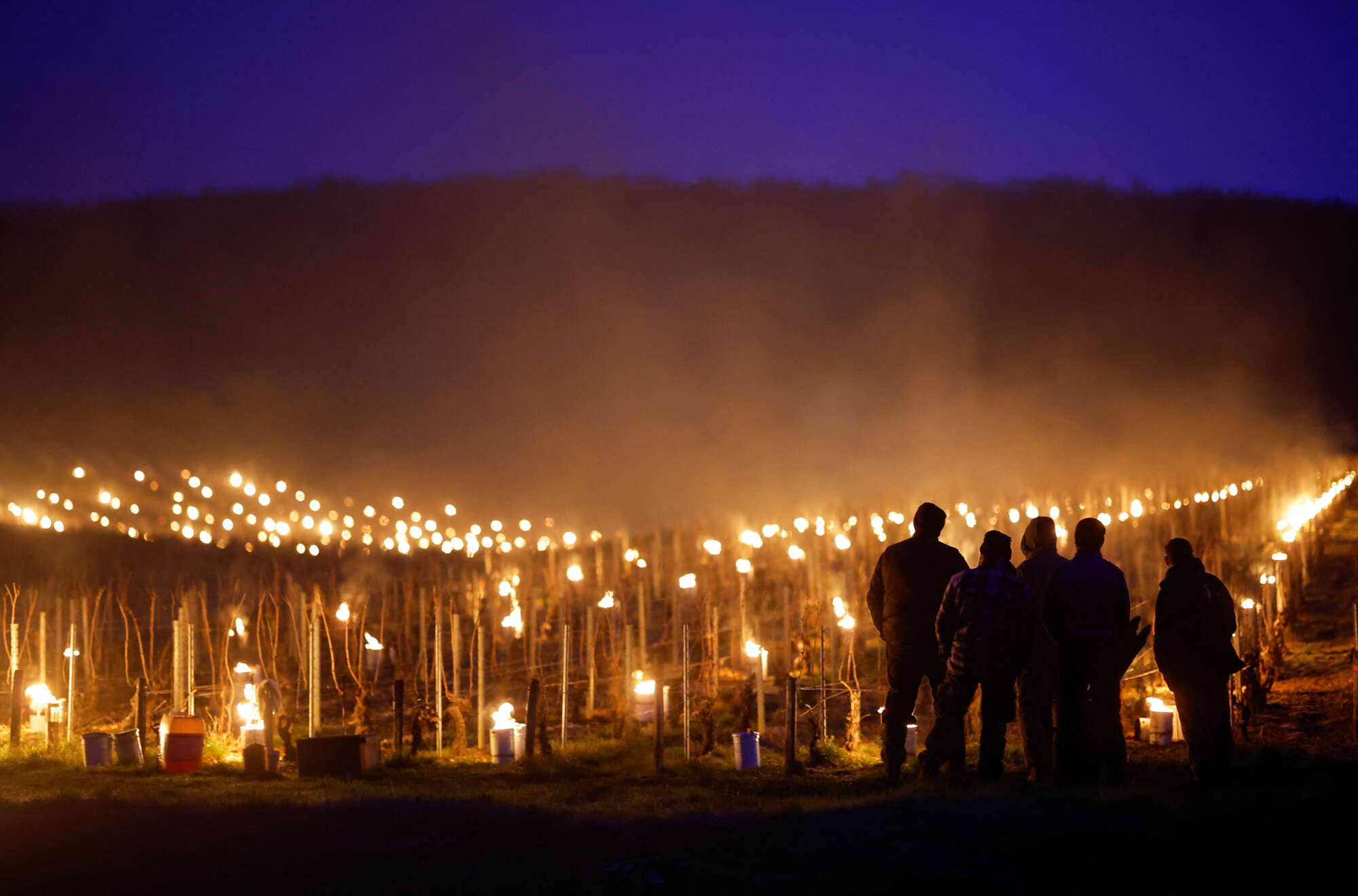 Το ψύχος δημιούργησε αυτήν την εικόνα στους γαλλικούς αμπελώνες. Ο Απρίλης έφερε ζέστη στη Μεσόγειο, όμως στην κεντρική Γαλλία οι αμπελουργοί κάνουν ό,τι μπορούν για να σώσουν τις καλλιέργειές τους