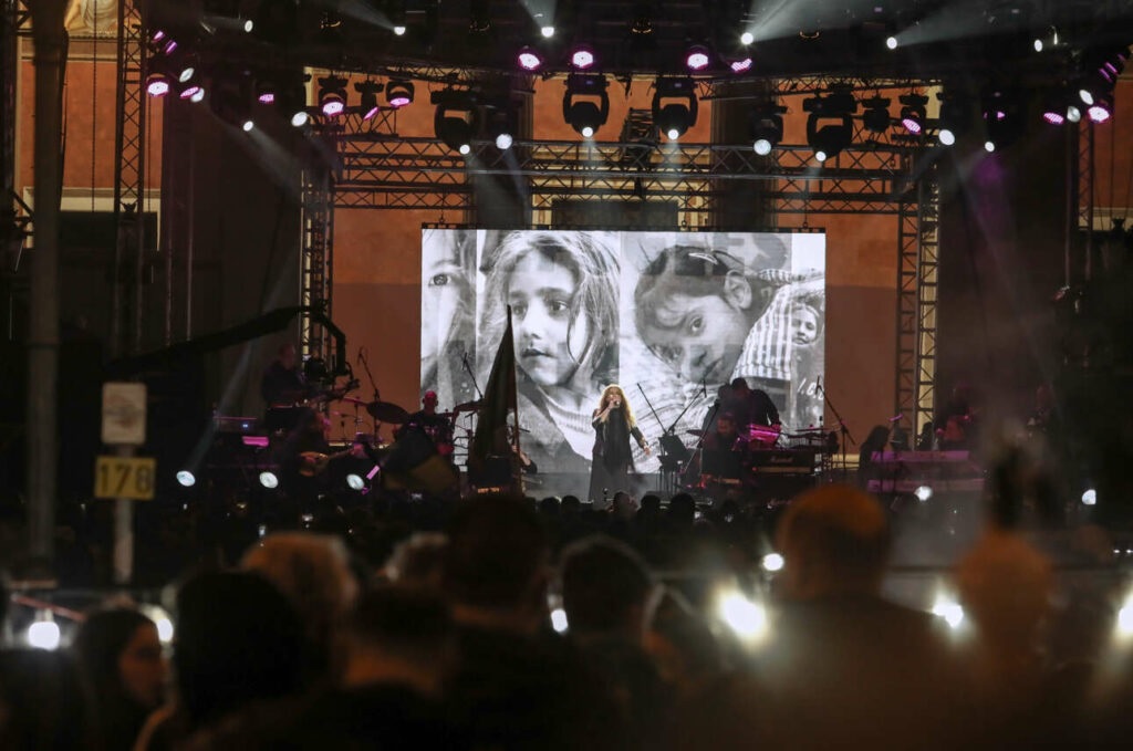 Καρέ από τη συναυλία που έγινε στα Προπύλαια της Αθήνας με σκοπό να καταδικαστεί ο πόλεμος στην Ουκρανία
