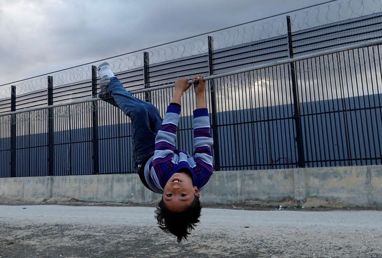 Μικρός Παλαιστίνιος, ξεσπιτωμένος από τον πόλεμο, απαθανατίστηκε σε μοναχικό παιχνίδι με συρματόσχοινο στη σιδερόφραχτη και συρματόπλεχτη μεθόριο Γάζας-Αιγύπτου