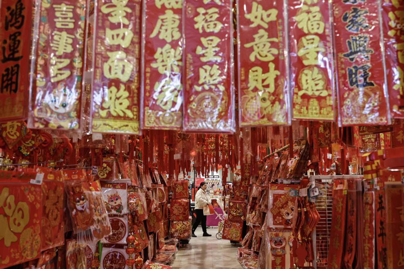 Εμπορικό «με εποχικά είδη» στην αλήστου μνήμης Γουχάν πουλάει στολίδια και πανό που γράφουν ευχετικά δίστιχα για το νέο σεληνιακό έτος (αρχίζει στις 10 Φεβρουαρίου)