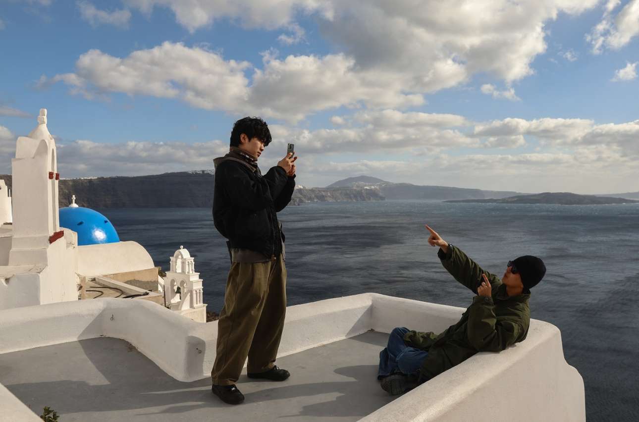 Μακάρι να μπορούσαμε να μάθουμε από τους τουρίστες πώς τους φάνηκε η «βαριά βιομηχανία» μας χωρίς «εργάτες» στις ρούγες και στις ταμειακές – καρέ από την… έρμη Θήρα