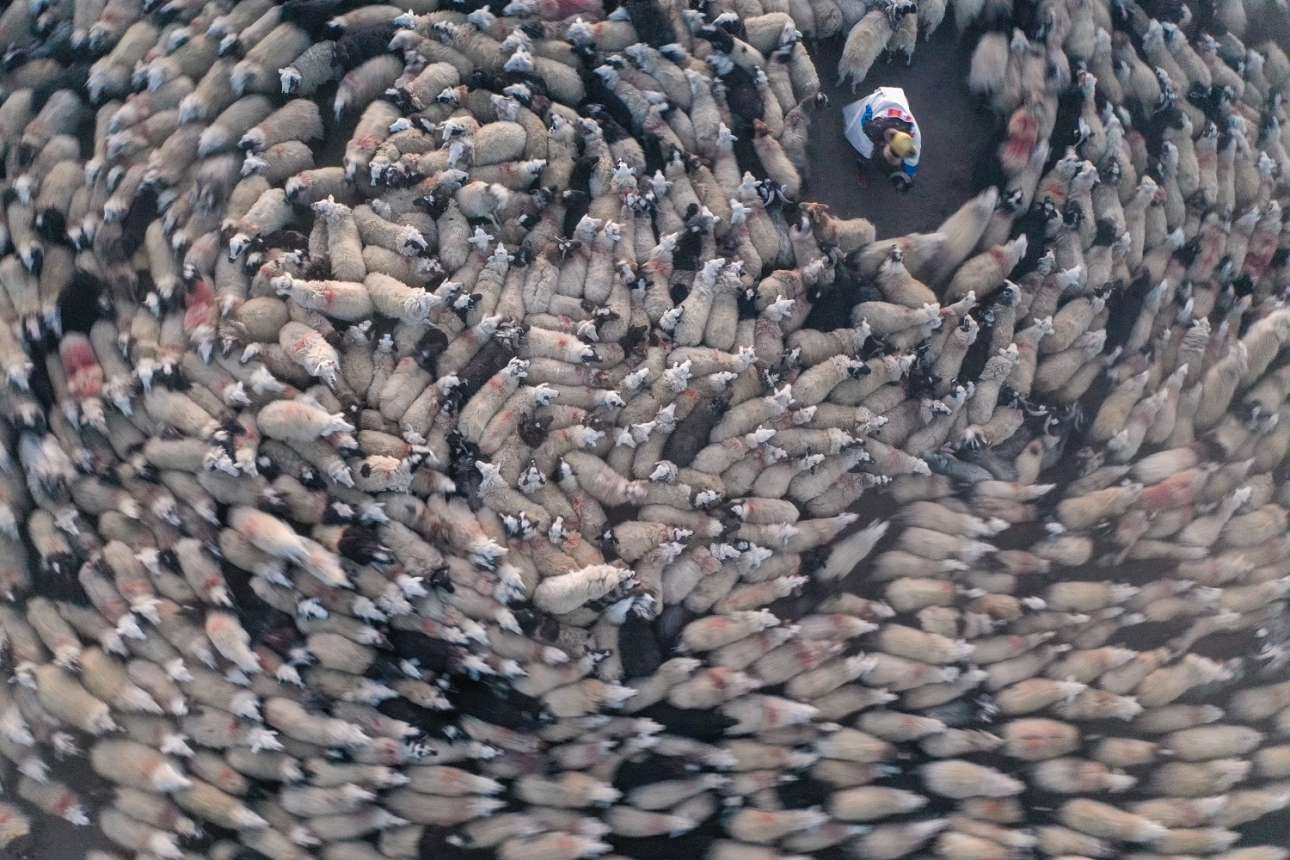 Πρόβατα με τσοπάνη και γκεσέμι διέσχισαν παγωμένη λίμνη στην Κίνα για να βρούνε χόρτο – και αμάθητα να μην ήταν τα ζωντανά, η γλίστρα πρέπει να τα κατατρόμαξε