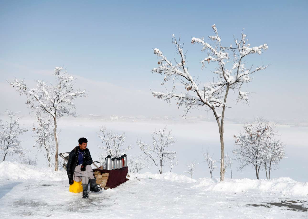 Αφγανιστάν: ο άνθρωπος πουλάει τσάι και αναμένει πελάτες μέσα στα χιόνια, λίγο έξω από την Καμπούλ