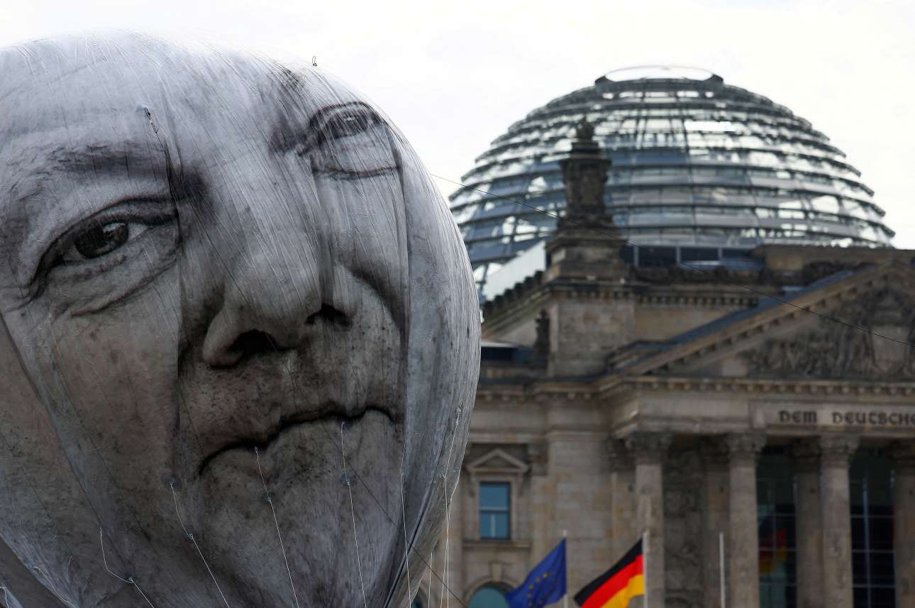 Μπαλόνι με την καρικατούρα του Ολαφ Σολτς υψώθηκε μπροστά στη γερμανική Βουλή – το βλέπουμε να το φουσκώνουν οι ακτιβιστές της ΜΚΟ του ποπ σταρ Μπόνο, η οποία «χωρίς πολιτική θέση» αλλά «με χρηματοδότηση φιλανθρώπων» θέλει «τερματισμό της ακραίας φτώχειας»