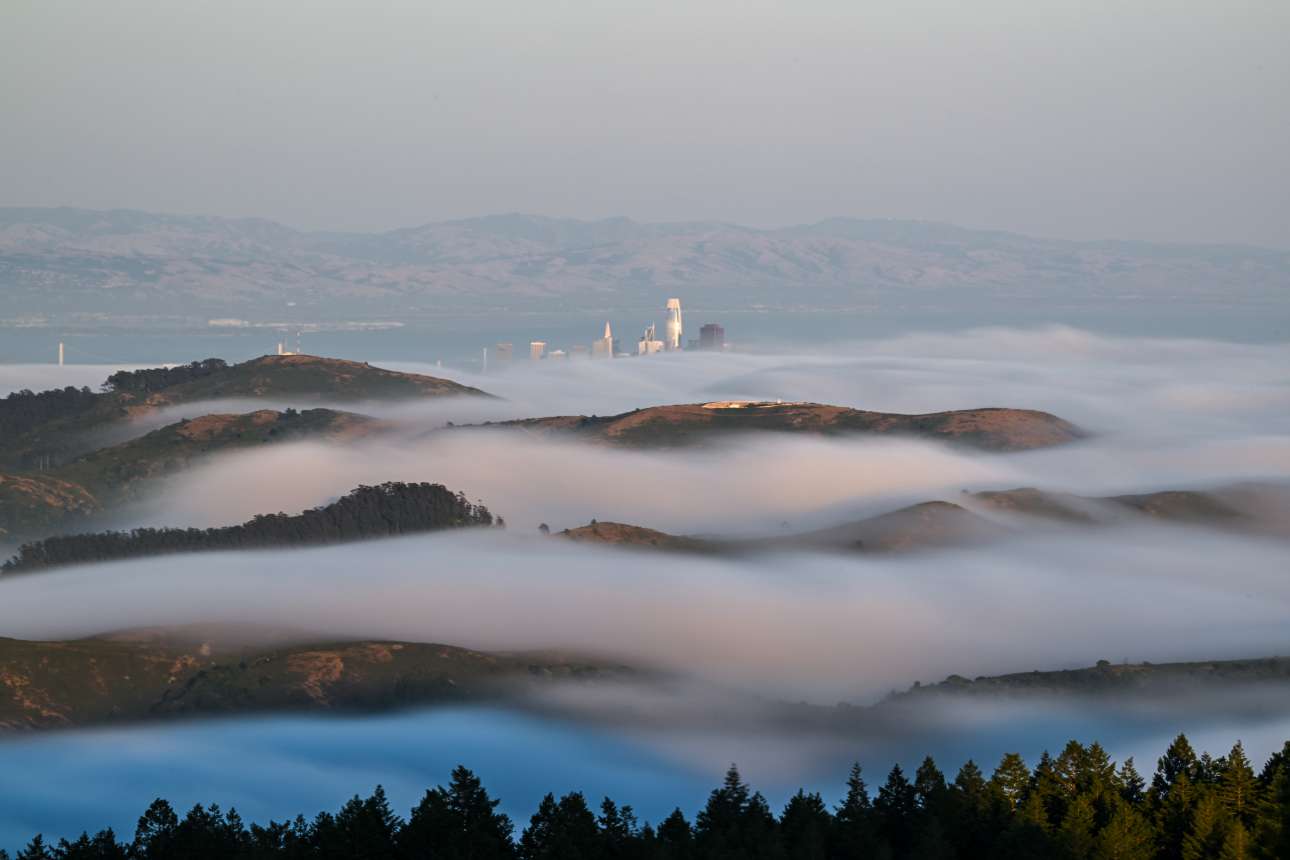 Ποιητική διάθεση του φακού: φέτες πηχτής ομίχλης –χαιρετίσματα του Ειρηνικού στην ακτογραμμή της Καλιφόρνιας– κατατέμνουν τον Κόλπο του Σαν Φρανσίσκο και τους γύρω ορεινούς όγκους δημιουργώντας την εντύπωση του ωκεάνιου, τρομακτικού κυματισμού