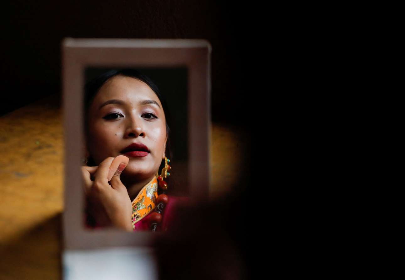Αυτή η νέα γυναίκα του Νεπάλ δεν ξέρουμε πώς λέγεται, μπορούμε όμως να ζηλέψουμε τον ταπεινό καθρέφτη της την ώρα του καλλωπισμού – τι σημασία έχει αν η καλλονή στολίζεται για τις πανηγύρεις των 88ων γενεθλίων του Δαλάι Λάμα…