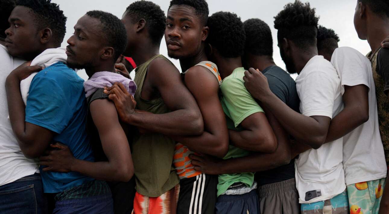 Αϊτινοί, υποψήφιοι μετανάστες στις ΗΠΑ, στριμώχνονται στην ουρά του συσσιτίου που τους προσφέρει η κουβανική κυβέρνηση – ξεκίνησαν για τον «Παράδεισο του καπιταλισμού», όμως τα κύματα της Καραϊβικής επαναστάτησαν και έστειλαν το καρυδότσουφλό τους στην «Κόλαση του σοσιαλισμού»