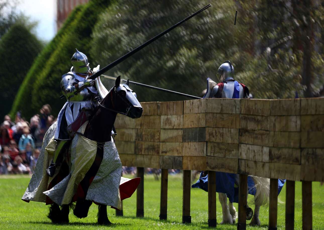 Ο πύργος με τα φαντάσματα δεν εικονίζεται στο στιγμιότυπο, φαίνονται όμως οι ιππότες της στρογγυλής τραπέζης που κονταροχτυπιούνται για χατίρι του βασιλικού Ιωβηλαίου στο Hampton Court Palace του Λονδίνου