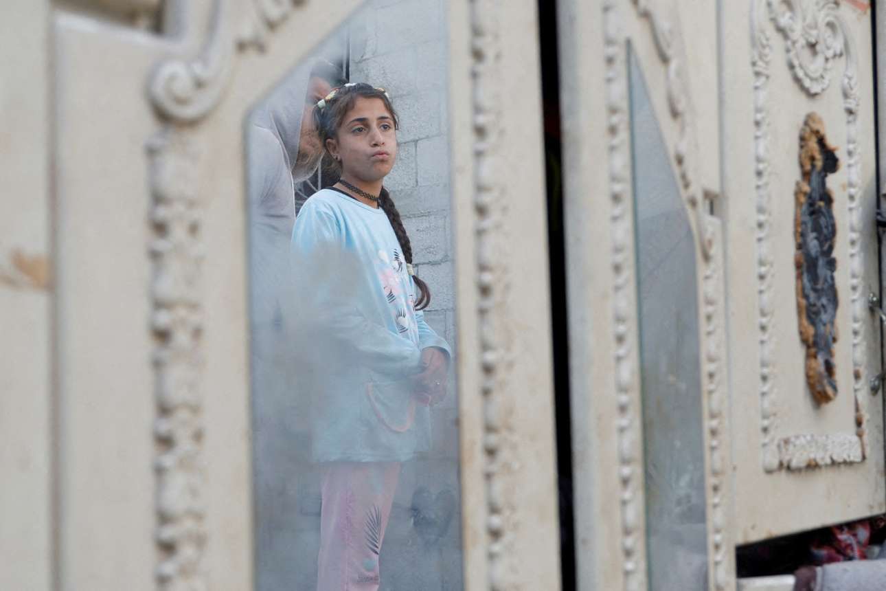 Το σπίτι της Γάζας βομβαρδίστηκε από τους Ισραηλινούς, όμως ο καθρέφτης του έμεινε όρθιος για να μας δείξει την οδυνηρή απορία της κοπέλας