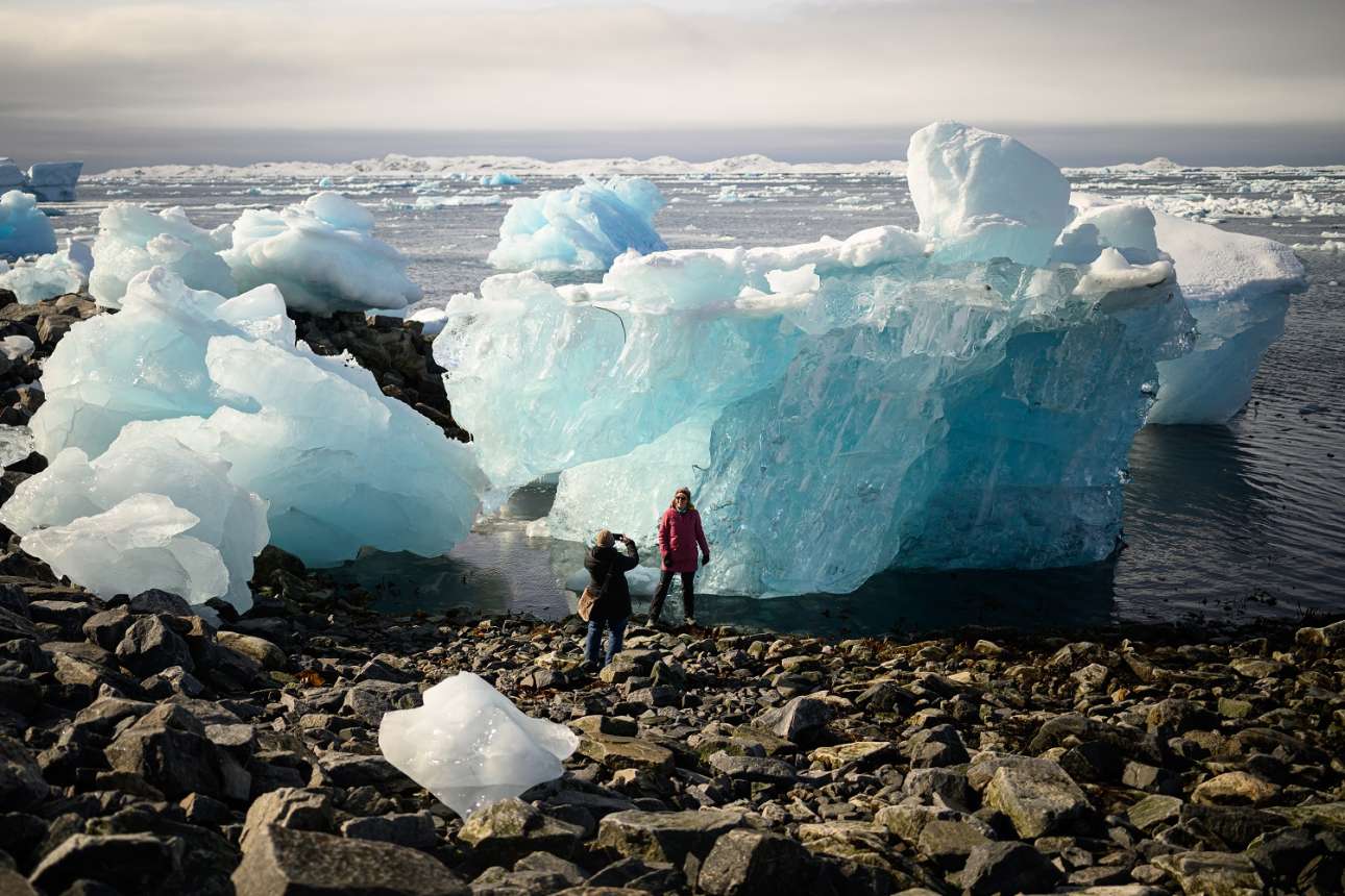 Την αύξηση των τουριστικών αφίξεων στη Γροιλανδία η λεζάντα του φωτοπρακτορείου την απέδωσε στις βλέψεις του Τραμπ και στο νέο αεροδρόμιο του Νουούκ