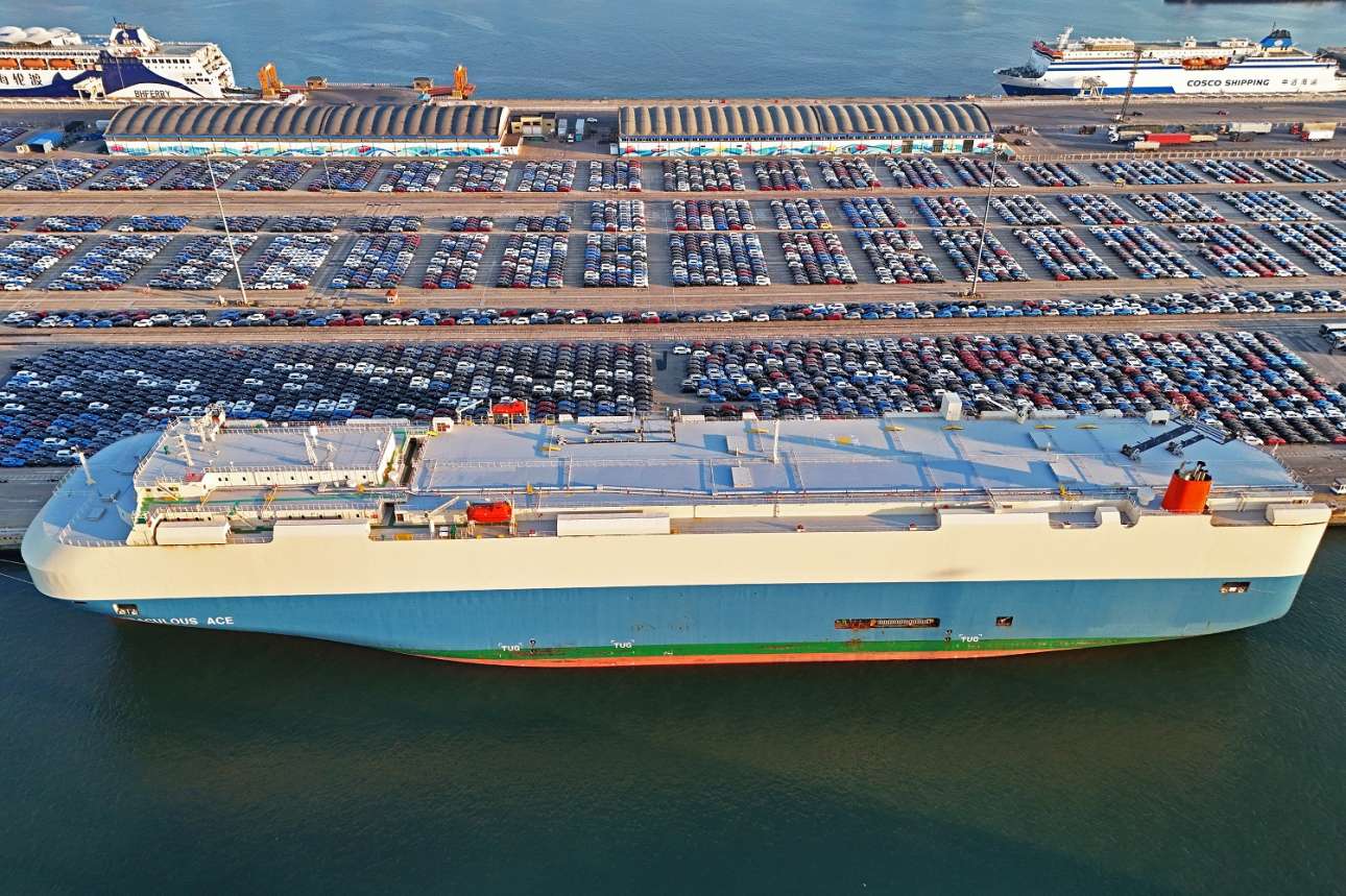 Ολα αυτά τα αυτοκίνητα περίμεναν στον ντόκο του Γιαντάι για να φορτωθούν στο εμπορικό καράβι τύπου ro-ro και να πωληθούν εκτός Κίνας