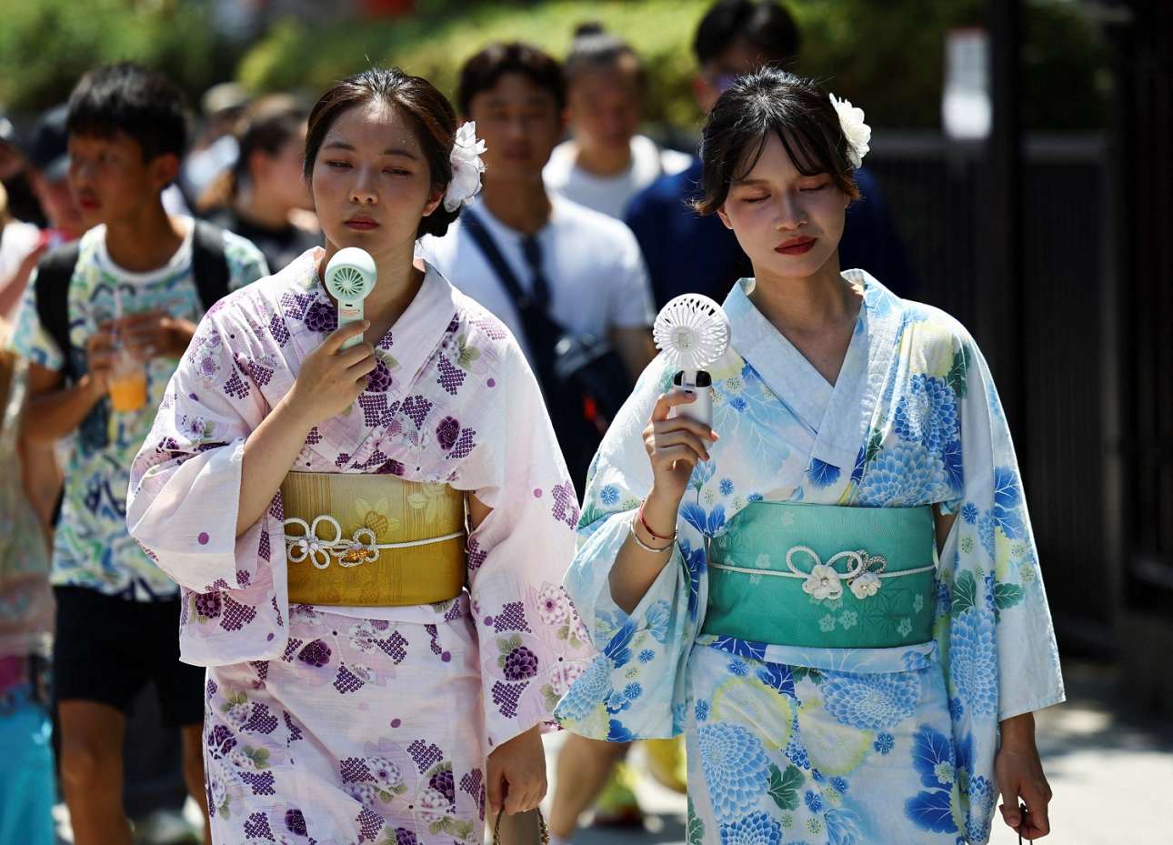 Δύο κουκλίτσες του Τόκιο μαράθηκαν από τον καύσωνα παρά τα ατομικά ανεμιστηράκια τους και τα ελαφρά, θερινά κιμονό τους