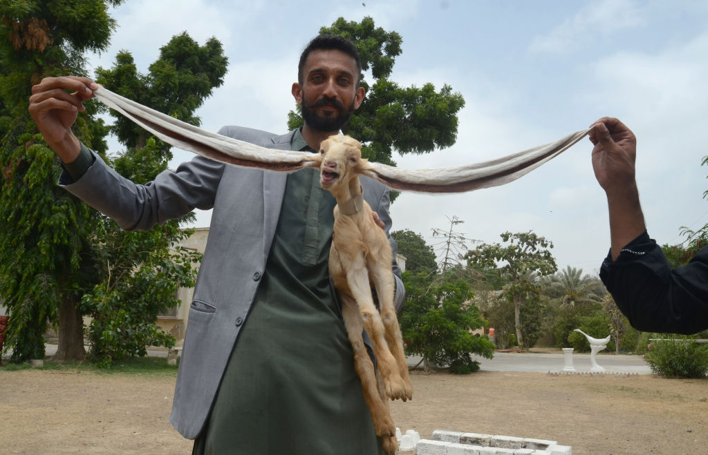 Η μικρή κατσίκα με το όνομα Σίμπα, ποζάρει με τον ιδιοκτήτη της στο Καράτσι του Πακιστάν, επιδεικνύοντας τα αυτιά της, τα μακρύτερα στον κόσμο στα 48 εκατοστά!