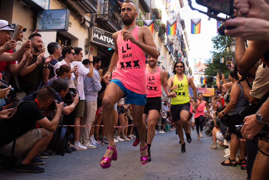 Ενας αγωνιζόμενος συμμετέχει στην κούρσα φορώντας ψηλοτάκουνα, στα πλαίσια του Φεστιβάλ Υπερηφάνειας στη Μαδρίτη