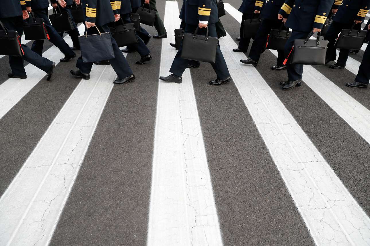 Δευτέρα, 5 Μαρτίου, Πεκίνο. Αντιπρόσωποι των κινεζικών ενόπλων δυνάμεων διασχίζουν τη διάβαση καθ' οδόν προς το συνέδριο του Κομμουνιστικού Κόμματος της Κίνας, όπου ανανεώθηκε η πίστη στο όραμα και στο πρόσωπο του προέδρου Σι Τζινπίνγκ