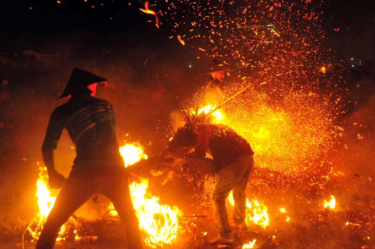 Παιχνίδια με την πυρά στην Ιάβα, σε «παραδοσιακή ετήσια εκδήλωση ευγνωμοσύνης για την καλή σοδειά»: καίγονται φύλλα μπανάνας