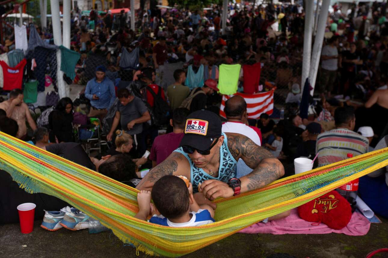 Υποψήφιος μετανάστης στις ΗΠΑ, προερχόμενος από την Κεντρική Αμερική, ξαποσταίνει παίζοντας με τον γιο του δίπλα σε άλλους συντρόφους του από το καραβάνι της απελπισίας – το καραβάν σαράι που τους φιλοξενεί είναι ένα μεξικάνικο ημιυπαίθριο κατάλυμα κοντά στα σύνορα με τη Γουατεμάλα