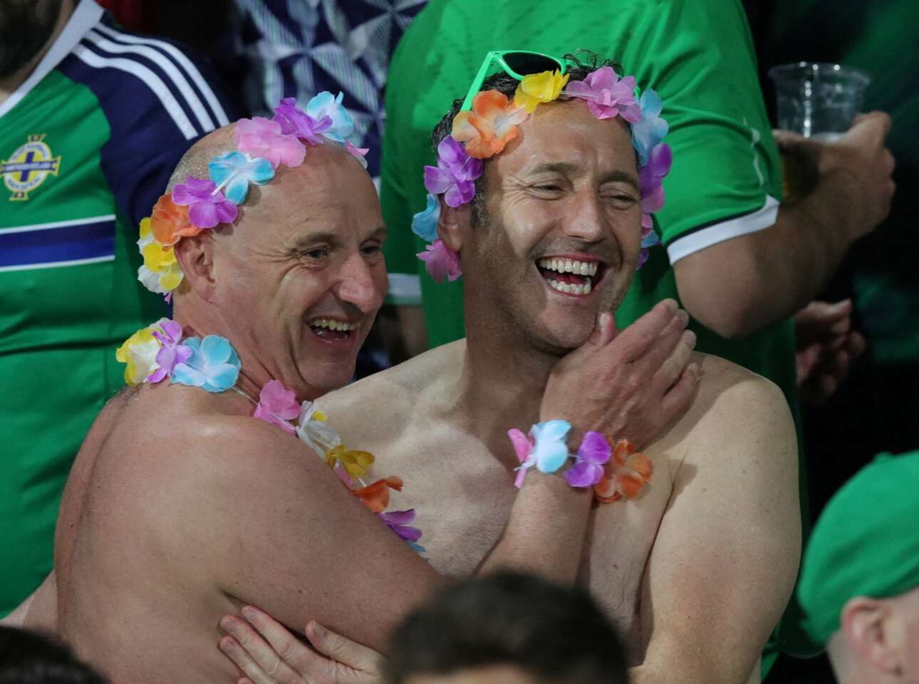 Φίλαθλοι της Εθνικής ποδοσφαίρου της Βόρειας Ιρλανδίας διασκεδάζουν στις κερκίδες του γηπέδου της Πρίστινα, στο Κόσοβο: δεν έχει σημασία που έχασε η ομάδα τους, αφού «η πλάστιγξ κλίνει εκεί που προτιμάμε, κατά την ερμηνεία που της δίνουμε» όπως αποσαφήνισε εγκαίρως ο διεισδυτικός ποιητής Ανδρέας Εμπειρίκος