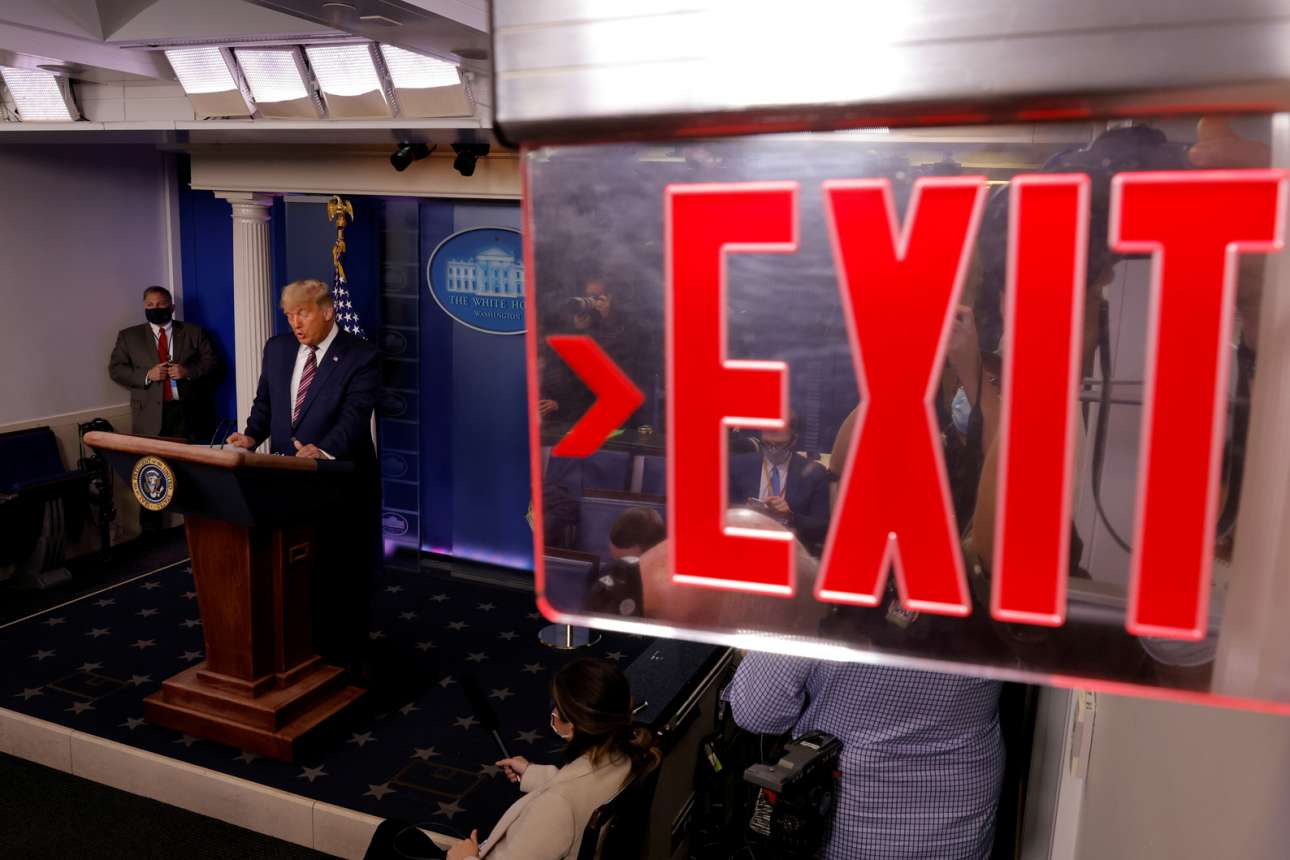 Eξοδος. Ο πρόεδρος των ΗΠΑ Ντόναλντ Τραμπ σχολίασε τα εκλογικά αποτελέσματα στην αίθουσα Τύπου του Λευκού Οίκου, στις 5 Νοεμβρίου, αλλά το ίδιο έκανε και ο φιλοπαίγμων φωτογραφικός φακός