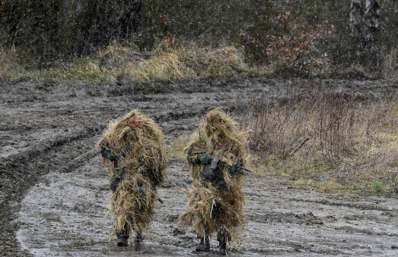 Χρόνια και ζαμάνια έπρεπε να περάσουν για να δούμε καρέ με γερμανούς στρατιώτες επί το έργον: αυτοί οι δύο, σκεπασμένοι με… βρύα και λειχήνες της στέπας, είναι ελεύθεροι σκοπευτές – αποκάλυψαν τις θέσεις τους για το χατίρι της γερμανίδας υπουργού Αμυνας που επισκέφθηκε τη μονάδα τους και είπε ότι το ΝΑΤΟ μπορεί να υπολογίζει στη Γερμανία