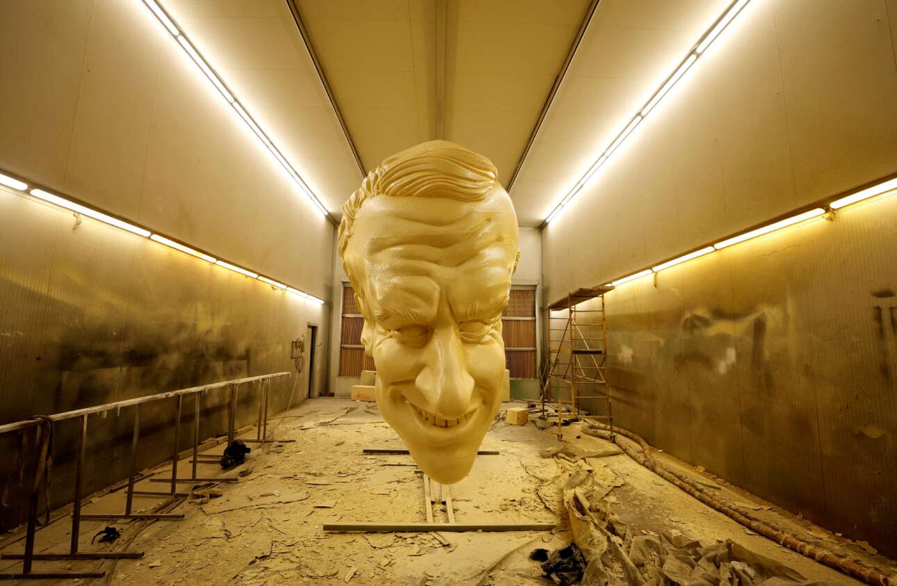 Ανήμερα της περιπετειώδους επίσκεψης του γάλλου προέδρου στη Μόσχα («μακρύ τραπέζι Πούτιν»), τα πρακτορεία διακίνησαν και αυτό το καρέ από τις αποθήκες των καρναβαλιστών στη Νίκαια της Κυανής Ακτής: δείχνει ένα τεράστιο κεφάλι, άβαφο ακόμη, με πρόσωπο παραμορφωμένο από σαρδόνιο γέλιο, από βαθιές μετωπιαίες ρυτίδες και από ανυπαρξία βλέμματος – υποτίθεται ότι, βαμμένο, θα σατιρίζει τον Μακρόν