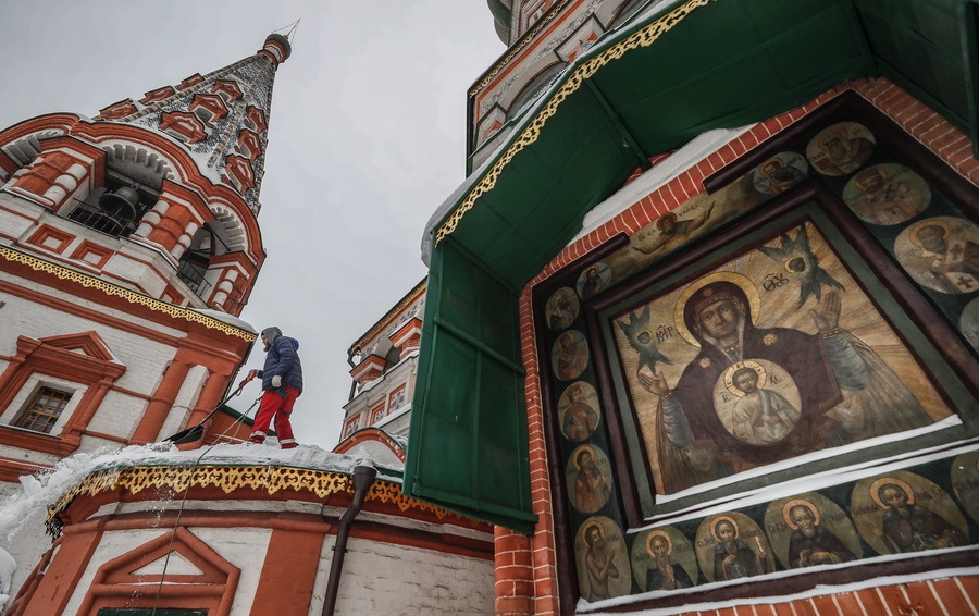 Χιόνια στο καμπαναριό δεν σημαίνουν απαραιτήτως Χριστούγεννα (είτε με το παλιό είτε με το νέο ημερολόγιο), ιδίως αν ζεις στη Μόσχα: στη ρωσική πρωτεύουσα ο εκχιονισμός του ναού τού Αγίου Βασιλείου, επί της Κόκκινης Πλατείας, είναι καθημερινή υπόθεση για τους εργάτες τον χειμώνα – έχουν τα εργαλεία, έχουν την εμπειρία, έχουν την ευσυνειδησία, έχουν τη βότκα, έχουν και την Παναγιά μαζί τους (διά παν ενδεχόμενο)