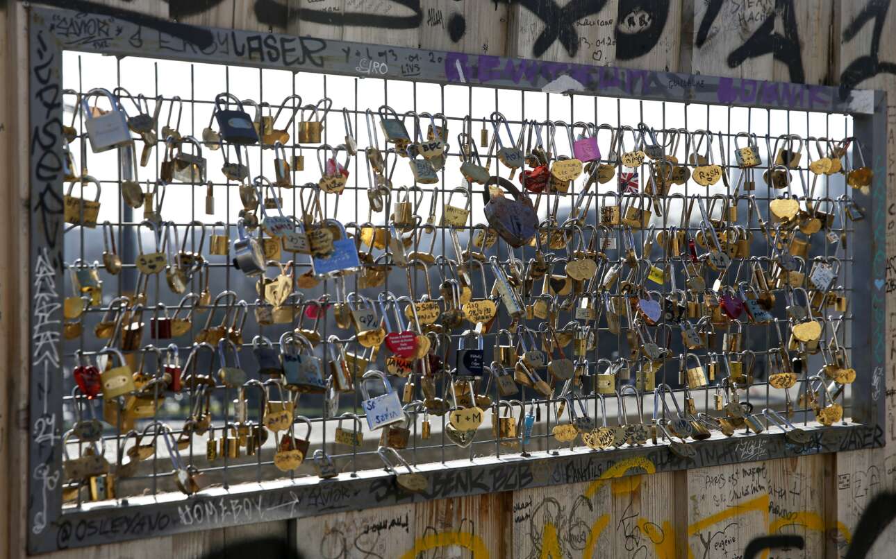 Στο Τροκαντερό και εν αναμονή «Αγίου Βαλεντίνου» κρεμάστηκαν καρδιόσχημα λουκέτα σημαδεμένα με αρχικά ερωτοχτυπημένων νεολαίων, κλειδαριές που διασφαλίζουν «για πάντα» τη χίμαιρα: το μεταλλικό πλέγμα του ταμπλό χόρτασε όρκους – νέα μόδα, όμως διαιωνίζει τον παρισινό μύθο τής παραφοράς που φιλοτέχνησε η κουλτούρα των μποέμ, των «καταραμένων ποιητών», κ.λπ., ξορκίζοντας την παραφθορά των πάντων