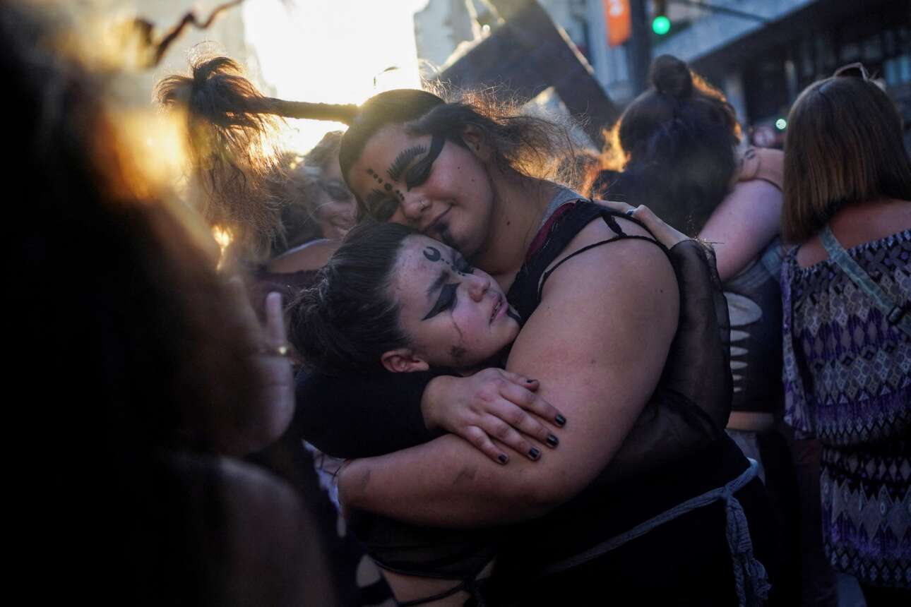 Αγκαλιές μετά τη διαδήλωση των φεμινιστριών στο Μοντεβιδέο της Ουρουγουάης – για την Ημέρα της Γυναίκας, φυσικά
