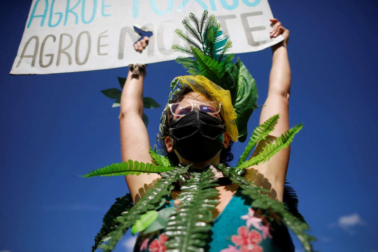 Στιγμιότυπο από την οικολογική διαμαρτυρία Act for the Earth που έγινε στην Μπραζίλια για να καταγγείλει την περιβαλλοντική πολιτική του βραζιλιάνου προέδρου Μπολσονάρο