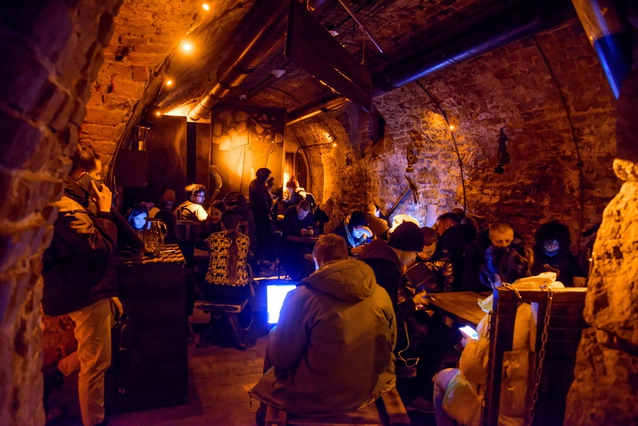 Ουκρανοί συναθροισμένοι σε καταφύγιο του Λβοφ (Λβιβ), στη δυτική πλευρά της χώρας