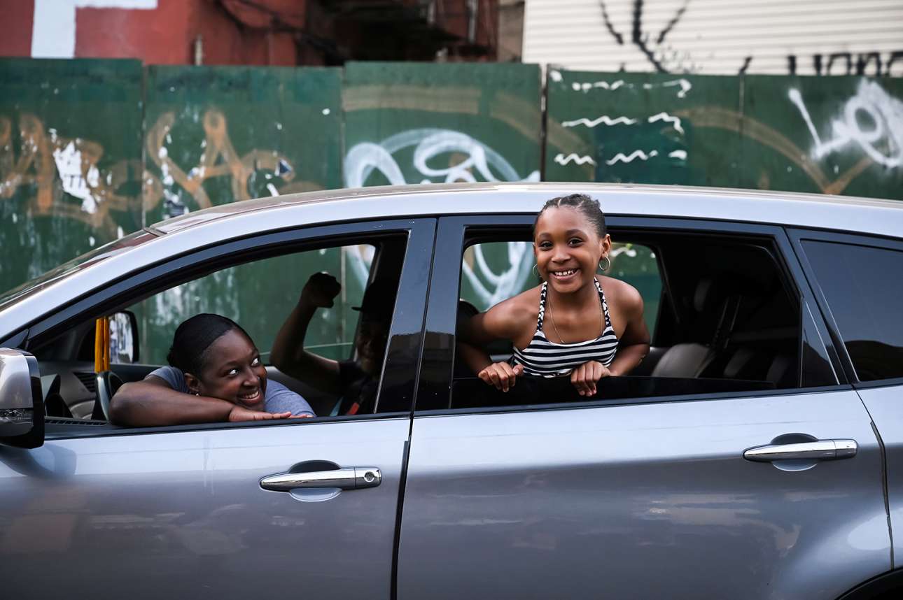 Νέα Υόρκη. Παρέα μαύρων σε χαριτωμένο αυτοκινητικό στιγμιότυπο, την ώρα κάποιας διαδήλωσης διαμαρτυρίας για τον φόνο του Φλόιντ