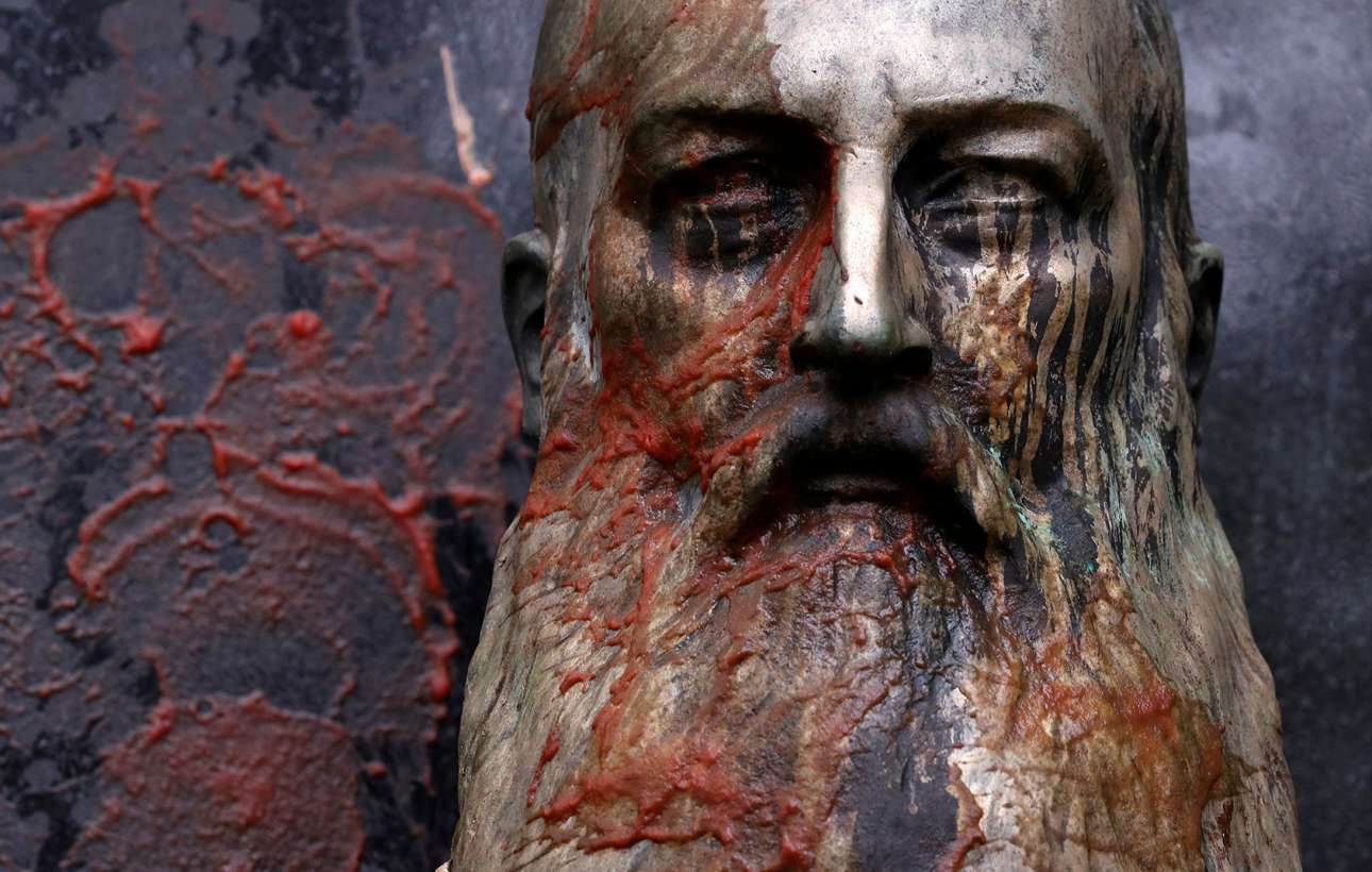 Σάββατο, 13 Ιουνίου, Φράνκφορτ, Κεντάκι. Το άγαλμα του Τζέφερσον Ντέιβις, πολιτικού ηγέτη των Νοτίων στον αμερικανικό Εμφύλιο, μεταφέρεται από το καπιτώλειο της πρωτεύουσας του Κεντάκι, καθώς πλέον θεωρείται σύμβολο του ρατσισμού