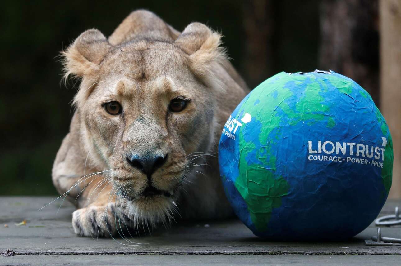 Στις 10 Αυγούστου γιόρτασε την «παγκόσμια ημέρα» του ο βασιλιάς της ζούγκλας. Στο καρέ θαυμάζουμε την Αρία, την ασιατική λέαινα του λονδρέζικου Ζωολογικού Κήπου. Οπως βλέπετε, από την υδρόγειο προτίμησε να ξεσκίσει την Αρκτική - δεν βιάζεται