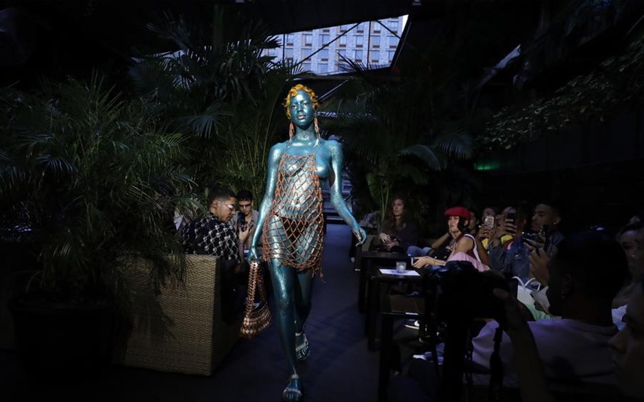 Μοντέλο συμμετέχει στην επίδειξη μόδας του οίκου Gypsy Sport στην Εβδομάδα Μόδας της Νέας Υόρκης