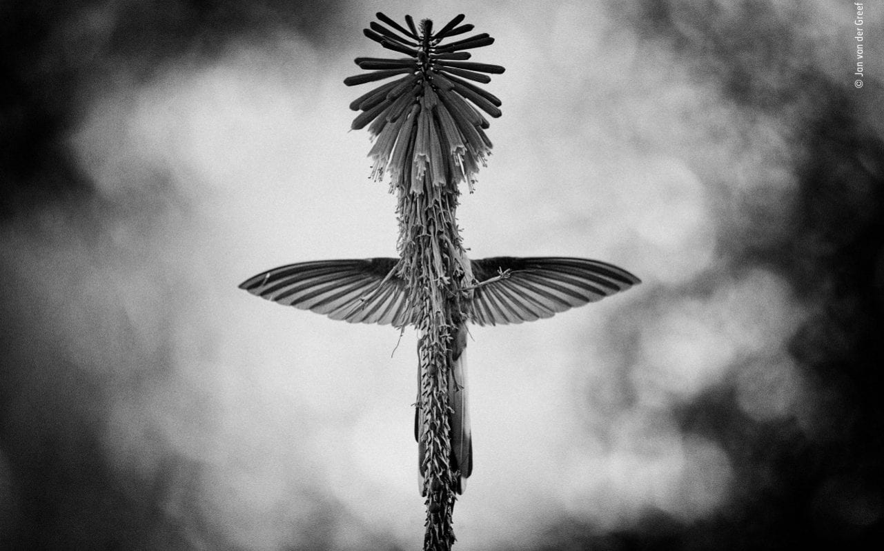 Μια εντυπωσιακή σκηνή της φύσης κατάφερε να καταγράψει με μια κάμερα που «πιάνει»14 καρέ το δευτερόλεπτο ο ολλανδός φωτογράφος Γιαν φαν ντερ Γκριφ. H φωτογραφία που κέρδισε το πρώτο βραβείο στην κατηγορία «Ασπρο και Μαύρο» τραβήχτηκε σε μια περιοχή στο νότιο τμήμα του Περού και δείχνει ένα ενδημικό είδος κολιμπρί να ρουφάει το νέκταρ από το φυτό κνιφόφια που παράγει μακριές μεγάλες όρθιες ταξιανθίες
