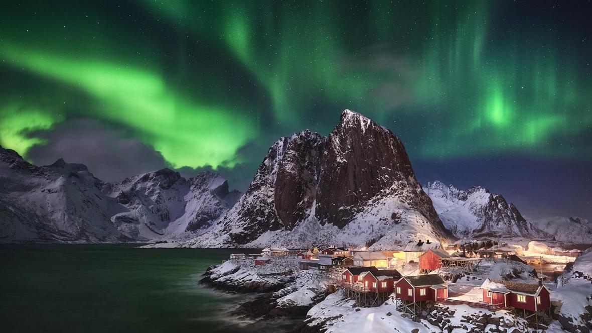 Επειτα από δύο εβδομάδες καταιγίδων, σύννεφων και χιονιού στα νησιά Λοφότεν, ο ουρανός τελικά καθάρισε, προσφέροντας τέλειες συνθήκες για τη φωτογράφιση του Βόρειου Σέλαος στο ψαροχώρι Χάμνοϊ